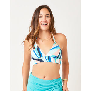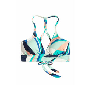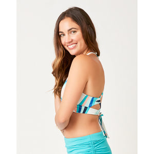 Stylish and fashion forward yet thicker chest band provides support. Halter top with twisted back is adjustable and supportive to all sizes.