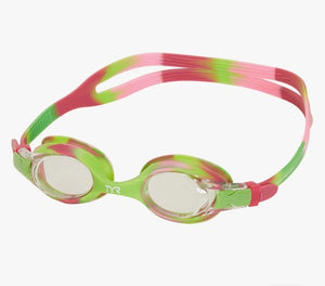 The TYR Swimple Goggle is the perfect swim goggle for smaller faces. With the TYR Swimple Goggle you will no longer have to spend time and energy fitting swim goggles on your kids! The TYR Swimple youth swim goggle is exactly what the name implies: SIMPLE! The headstrap on this youth goggle adjusts by merely pressing down on the release button, holding down and pulling the strap through until you find the perfect fit. The small uni-body frame is made specifically for children, requiring no adjustment around the eyes. Great colors and great fit make the TYR Swimple Goggle one of our most popular youth swim goggles!Features Include:
