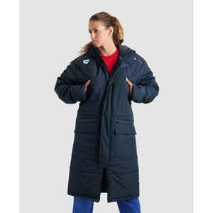 Get ready for colder climates with our team line parka. New this season, this classic cover-up is cut from a high-tech waterproof fabric and is padded for extra warmth. Smart details like a generous drawstring hood, concealed fastening and ribbed cuffs improve insulation. Use the large front flap pockets for your personal items and technology. Comfortably confront the crisper temperatures in this sleek logo-stamped jacket. Additional features - 2-way heavy duty zip and snap buttons - prevents moisture penetration and provides moisture management, thanks to underarm ventilation eyelets - Internal draw cord - Raglan sleeves for freedom of movement - Reflex taping along the sleeves - barrel lock hood bungee to lock cold out - unisex comfort fit If in between two sizes, select the smaller one. 100% Polyamide