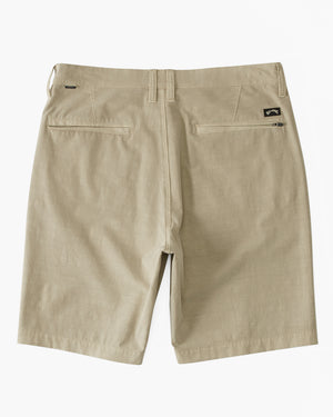 Our Billabong Crossfire Wave Washed 18" Hybrid Submersible Shorts, made with eco-conscious 4-way stretch organic cotton and recycled polyester quad blend fabric from recycled PET plastic bottles, feature a core fit, crossfire internal jacquard waistband and button closure. Outseam is 18", boasting side pockets, back pockets, hidden coin pocket and zipper at back right pocket for branding appeal.