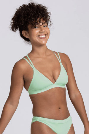 The Shara Bikini top is the perfect blend between land and sea. Great for all your swim and training workouts and also hit a double day on land. This top is the perfect bikini and sports bra combo. The Shara bikini top is unique because it can transition to a sports bra featuring a thick band around the ribcage for security and four parallel straps for maximum support.