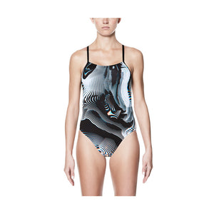 Dominate the competition in the all new Nike Geo Aftershock Poly Blend Performance Cut Out Female suit. Thin straps and a V-back design allow for maximum range of motion. Constructed with a light weight durable fabric the Nike Aftershock competition suit not only looks great, but also performs above average.