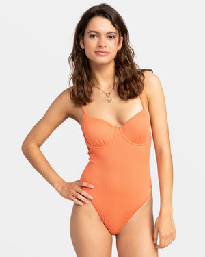 Offering high support and a flattering shape with underwire cups and side boning, this ROXY LOVE one-piece swimsuit is made of recycled texture rib-blend fabric offering a luxe feel and maximum stretch.