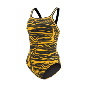 Train in style with the Dolfin Lava female one piece swimsuit. The Dolfin Lava Reliance DBX Back Female composed of completely polyester is the most durable new suit with guaranteed reliance chlorine resistance. The perfect practice suit has arrived!