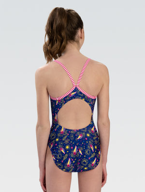 Unleash your inner radiance with the Women's Uglies Moonlight V-Back One Piece. This stunning swimsuit showcases a unique and stylish design inspired by the night sky, featuring a captivating blend of stars, moons, and luminous details. Built for enduring performance, this suit offers reliable chlorine resistance, UPF 50+ sun protection, and excellent shape retention, standing up to rigorous training. The streamlined V-back design reduces drag and provides a secure, comfortable fit, empowering you to focus on your technique. Make a statement with every stroke in this durable and distinctive swimsuit.