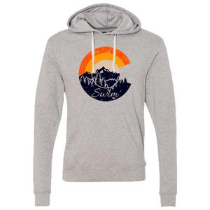 Swim Colorado design exclusive to MI Sports! This swim colorado hoody is one of our most popular selling designs. Whether you are shopping for yourself or for a gift this swim shirt is guaranteed to be a hit!