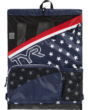 The TYR Elite Team Mesh Backpack is the perfect choice for hauling swim and workout gear. The LBMSHELT features mesh venting for increased dry time and drainage. The adjustable, ventilated padded should straps allow for easy transport and versatile carrying options. Includes large secondary compartment and gear loops for additional storage.