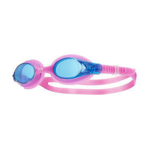 The TYR Swimple Goggle is the perfect swim goggle for smaller faces. With the TYR Swimple Goggle you will no longer have to spend time and energy fitting swim goggles on your kids! The TYR Swimple youth swim goggle is exactly what the name implies: SIMPLE! The headstrap on this youth goggle adjusts by merely pressing down on the release button, holding down and pulling the strap through until you find the perfect fit. The small uni-body frame is made specifically for children, requiring no adjustment around the eyes. Great colors and great fit make the TYR Swimple Goggle one of our most popular youth swim goggles!