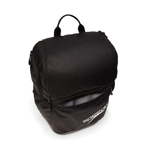 Built tough for swimmers, by swimmers. Designed to handle all your gear, the functional Teamster backpack has been updated with a sleeker body that now stands better when empty, a customizable top flap and a hidden ventilated front pocket. Just like the best-selling original, this bag is anchored by an unlined main compartment and features a side pocket with drainage for storing damp items, plus another that can hold a large water bottle. This is the one carryall you need to go about your day hands free and worry free.