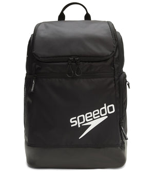 Built tough for swimmers, by swimmers. Designed to handle all your gear, the functional Teamster backpack has been updated with a sleeker body that now stands better when empty, a customizable top flap and a hidden ventilated front pocket. Just like the best-selling original, this bag is anchored by an unlined main compartment and features a side pocket with drainage for storing damp items, plus another that can hold a large water bottle. This is the one carryall you need to go about your day hands free and worry free.