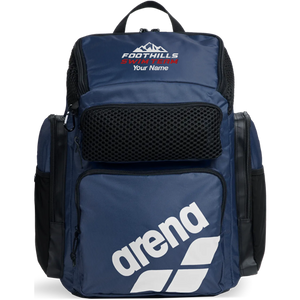 Organize all the stuff you need for training. The large arena One Go Backpack 45L, featuring a top-loading design, allows for effortless packing and access to your belongings. The roomy main compartment and four external zipped front pockets provide multiple storage options. Breathable and watertight inserts keep wet and dry items separate. It includes a smart laptop sleeve and two external bottle pockets.
