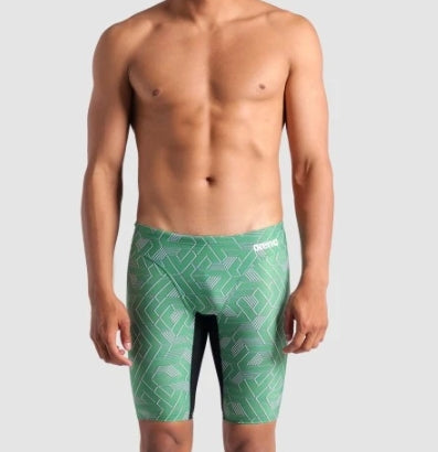 The Escape Jammer's unique pattern showcases a series of interconnected shapes, creating a visually stunning effect that draws the eye and accentuates your figure. This Jammer ensures optimal support and freedom of movement, making it ideal for both competitive swimmers and those who enjoy a vigorous swim workout.