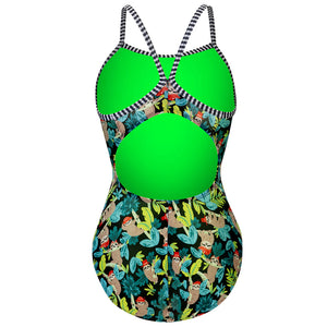 Enjoy the sun with UPF 50+ protection and dive into the water with confidence in the shape-retaining fabric. The performance cut sits at the hip, and the engineered fit withstands long hours in the water. Unwind and just hang with this sloth-inspired charm in a playful print that's as chill as you are!