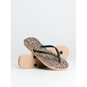 Lightweight and durable, these women's flip-flop sandals are designed with a printed footbed and a flexible rubber outsole, adding textured straps and a ROXY branded metal pin for a pop of flavor.