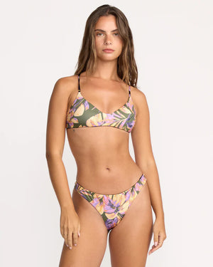 Sunrise paddle, sunset lounge-one top handles both. Flip it to match the mood. Our reversible V bralette bikini top features adjustable O-ring sliders, center-back hook, partially recycled stretch fabric, no cups, and discreet side-seam embroidery. Featured here in the Luv Army colorway.