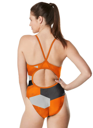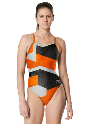 The Speedo Women's Glimmer Flyback One Piece Swimsuit is stylish and can do it all, featuring Endurance+ fabric for long-lasting performance and durability.