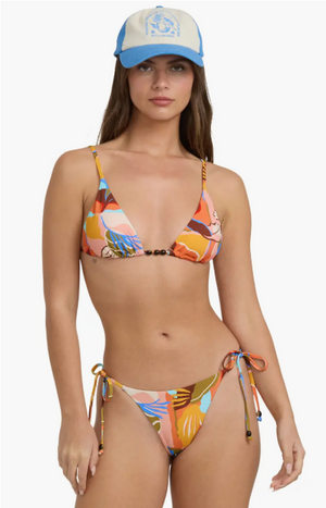 Minimalist triangle slider cups easily adjust for a perfect fit as you lounge by the water in this sunny jewel-embellished bikini top.
