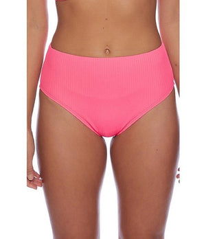 The New Platform High Waist Swimsuit Bikini Bottom by Next Swimwear sits comfortably at the belly button with moderate side leg coverage. A modern take on the Harmony Bikini Bottom.
