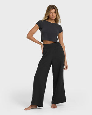 Breathe easy in these soft, relaxed-fit gauze pants from Billabong Women. The 100% cotton double gauze fabric and smocked elastic waist keep you comfy while front slash pockets and back patch pockets stash your essentials. Wear them everywhere. 32" full length. Featured here in the Black Sands colorway.