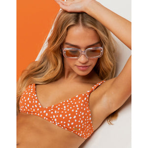 Feel cool, calm, and collected in this triangle bikini top of the Tropical Oasis Collection. The knotted design is crafted from durable fabric that's soft and stretchy for a comfortable yet flattering fit. Complete with a cute polka print, you can easily mix and match with your favorite bikini bottoms of the swim capsule.