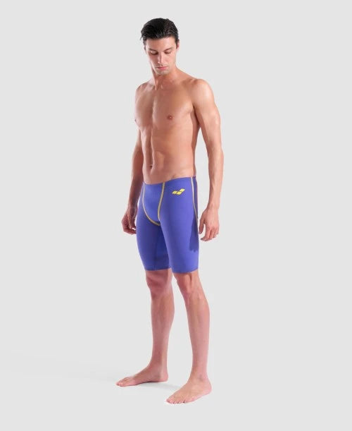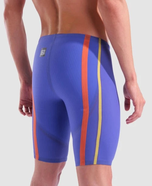 Step into the spotlight with our Eclipse Glare Powerskin Primo Jammers for men—the first tensoelastic tech suit delivering unmatched compression, flexibility and speed. Crafted from high-performance Hyperforce™ fabric, this suit repels water while internal taping supports and aligns your body for peak race-day posture. The vivid tones of indigo, coral and yellow echo bold energy and sharp focus.