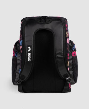 The spacious, comfortable, and stylish arena Spiky III Allover Backpack 45 is especially designed for swimmers. The Spiky III 45 has a larger main compartment with multiple exterior compartments to carry all your training gear. So stuff your swimwear, workout clothes, all training gear and water bottle into the convenient main compartment or side vented pockets for easy stow options. With a total of 45 liters of storage space, this bag is the only one you need for carrying your swim & dry-land training needs to the pool or gym.