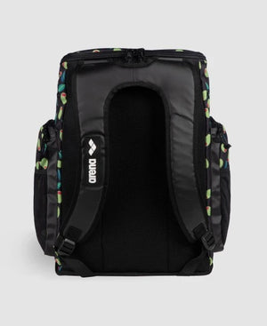 The spacious, comfortable, and stylish arena Spiky III Allover Backpack 45 is especially designed for swimmers. The Spiky III 45 has a larger main compartment with multiple exterior compartments to carry all your training gear. So stuff your swimwear, workout clothes, all training gear and water bottle into the convenient main compartment or side vented pockets for easy stow options. With a total of 45 liters of storage space, this bag is the only one you need for carrying your swim & dry-land training needs to the pool or gym.