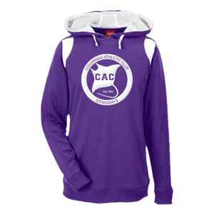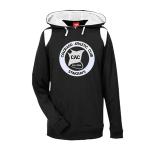 Show your team spirit and represent your swimming skills with this dri fit performance, tackle-twill hooded sweatshirt! Great for those cold mornings or after an evening swim practice, or for just everyday wear!!