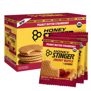 A thin layer of our classic honey sandwiched between two thin waffles. Our number one selling waffle flavor will satisfy your taste buds and keep you going as an afternoon snack, during your favorite activity or go great with your cup of coffee or tea. Peanut butter strawberry waffles will have you feeling like a kid again. Combine peanut butter, a sweet strawberry and honey-infused filling with delicious soft-baked waffles and you've got the best tasting sports fuel out there.